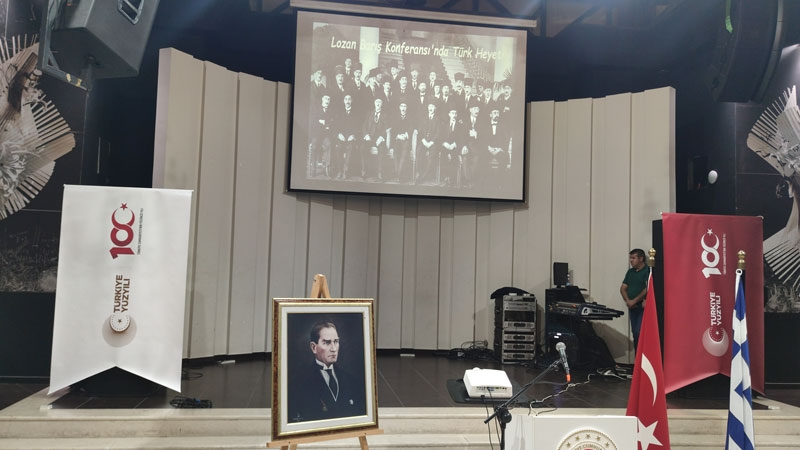 Programın devamında Gümülcine Başkonsolos Aykut Ünal, katılımcıları selamladı ardından anavatanın kuruluşunun 100. yılı konusunda düşünceleri soydaşlarla paylaştı.