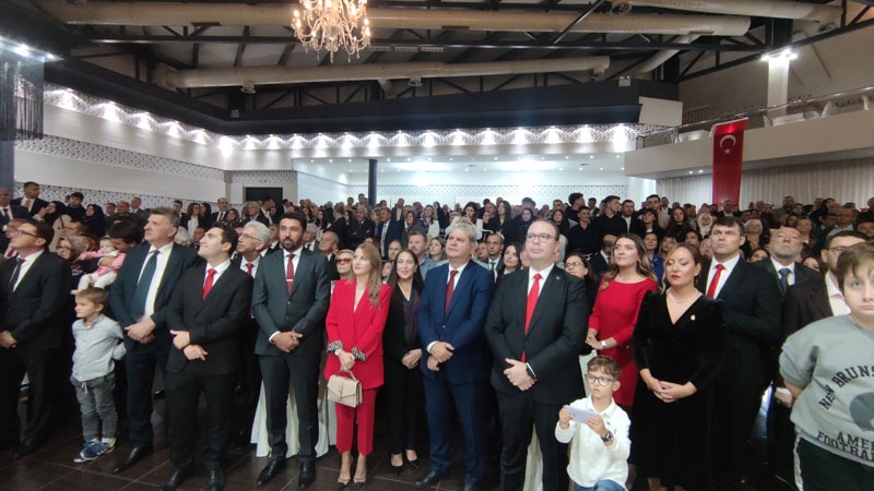 Türkiye Cumhuriyeti’nin kuruluşunun 100. Yıldönümü vesilesiyle verilen resepsiyona soydaşlar büyük ilgi göstererek salonu tıklım tıklım doldurdu.