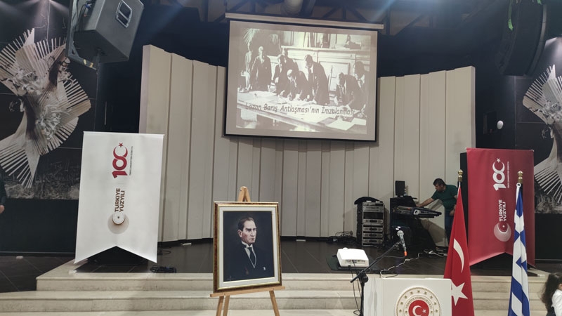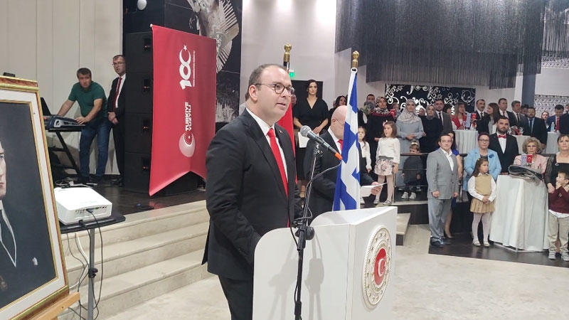 Türkiye Cumhuriyeti Gümülcine Başkonsolosluğu, cumhuriyetin kuruluşunun 100. yılı vesilesiyle 30 Ekim 2023 Pazartesi akşamı Yassıköy’de Astrea salonunda 19.00-21.00 saatleri arasında resepsiyon verdi.