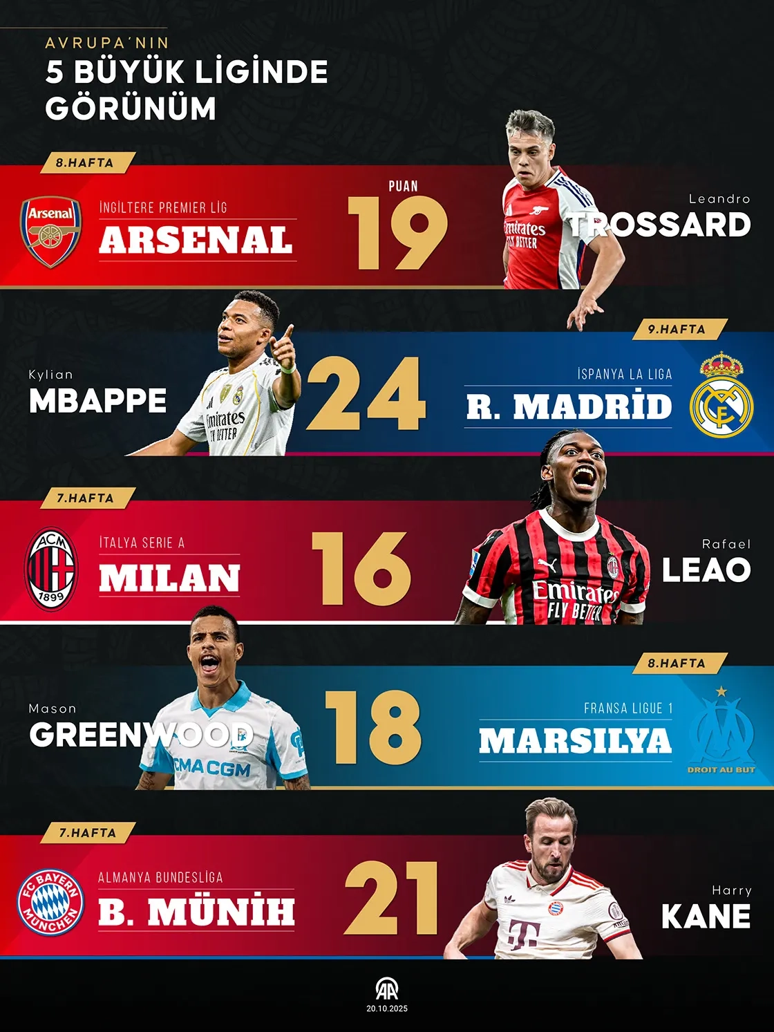 Avrupa'nın 5 büyük futbol ülkesi Almanya, Fransa, İngiltere, İspanya ve İtalya'daki maçlara hafta sonu devam edildi.